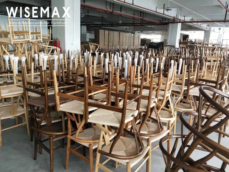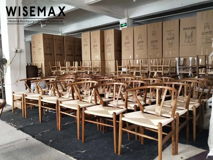 Hot Sale Ash Wood Hans Wegner Wishbone Y Chair Solid Wood Restaurant Wooden Chair Woven Rush Seat Wooden Dining Chair