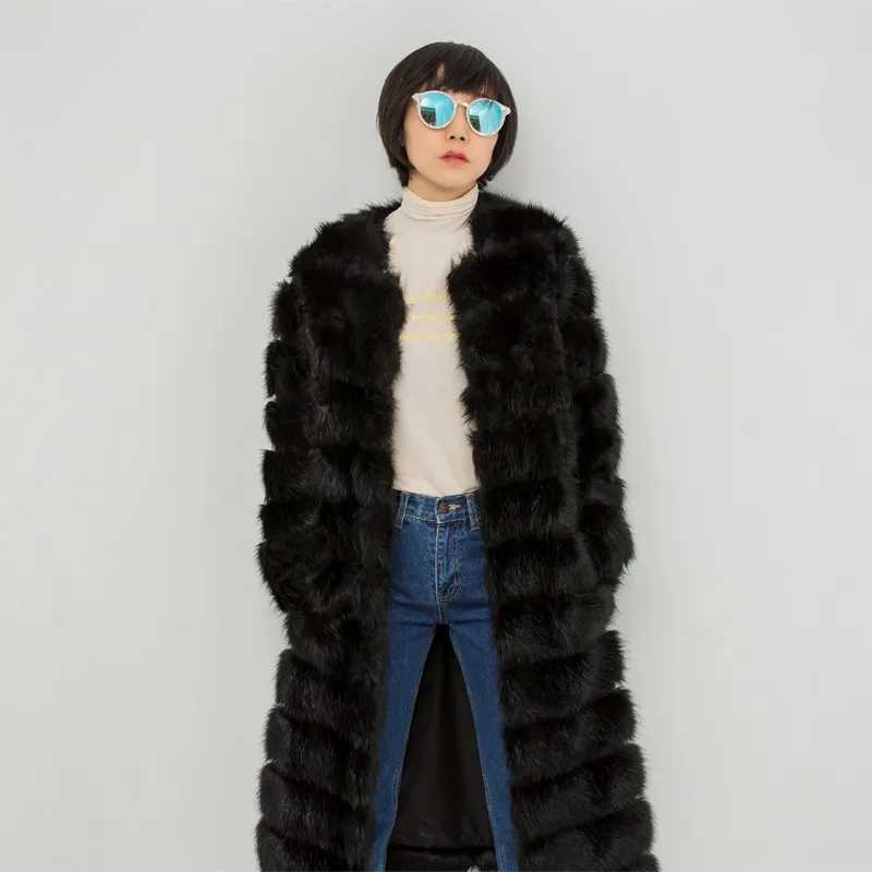 Warm Winter Hot Sale Long Black Faux Fox Fur Coat