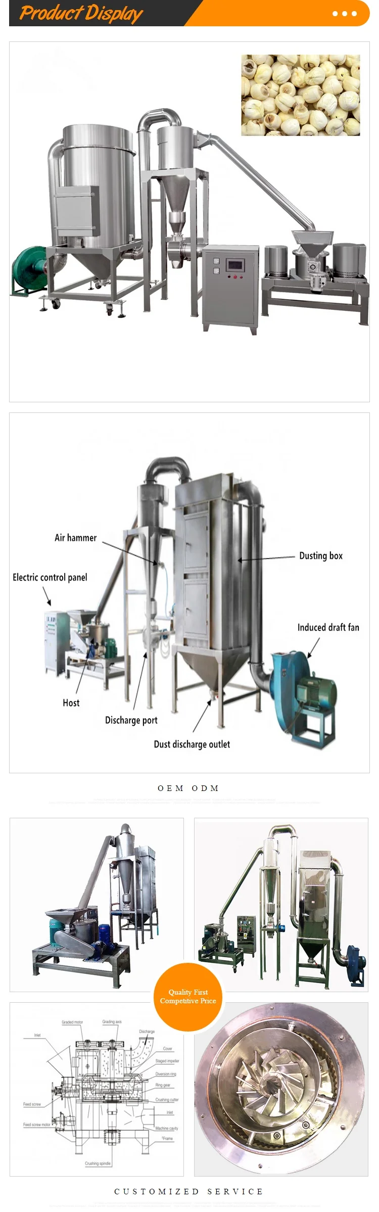 | Production capacity(kg/h) | 10-100 | 30-150 | 50-500 | 100-800 | 150-1200 |