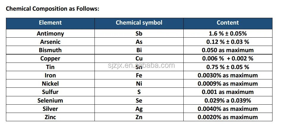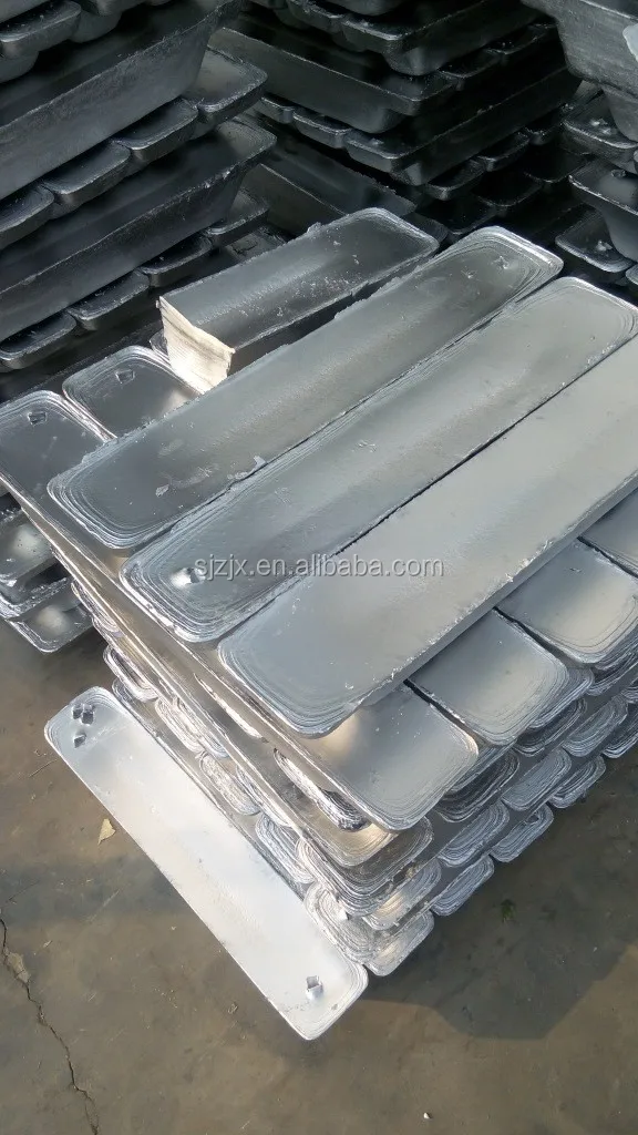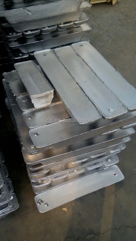 A lead-containing lead alloy for the manufacture of lead acid battery grids and conductive parts. Compared with pure lead, the melting point is lower, the fluidity in the molten state is good, the casting is easy to form, and the hardness after solidification is large; the disadvantage is that the gas deposition super-potential of the grid is low. In order to reduce the precipitation of gas during charging of the battery, reduce self-discharge and improve corrosion resistance, the amount of strontium has been gradually reduced from the conventional 5% to 7% to about 2% or even lower. A small amount of other ingredients such as tin, arsenic, sulfur, selenium and copper are also selectively added to improve the physical and chemical properties of the alloy.