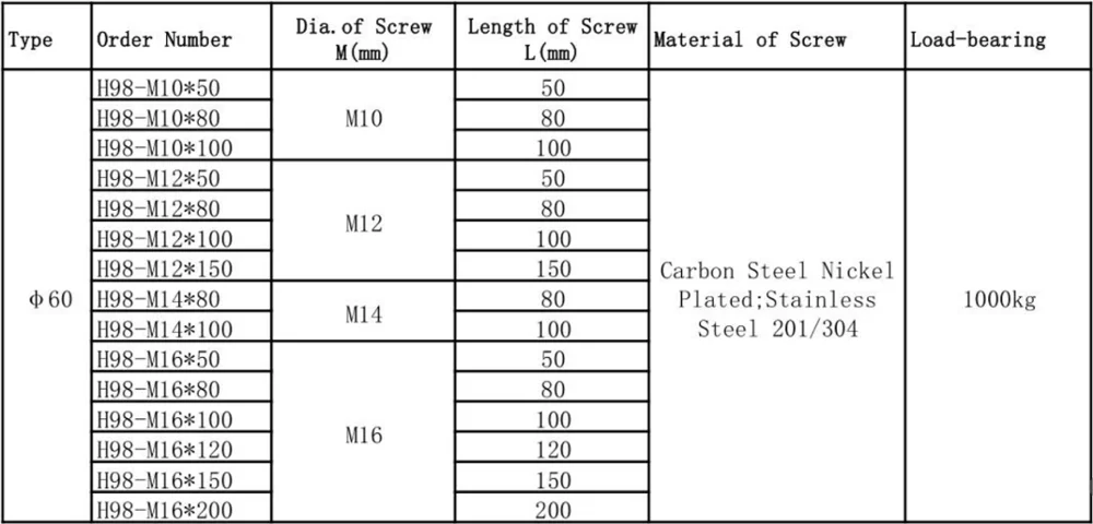 | Size:except for the size listed in the table, the size and appearance of the screw and chassis can be customized. |