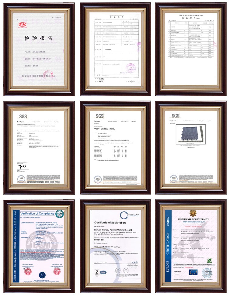 ZSFloor sells more than one million square meter of flooring per year to all over the world.The products are highly praised by people who love sports at home and abroad for their good sports performance, easy installation and long service life.