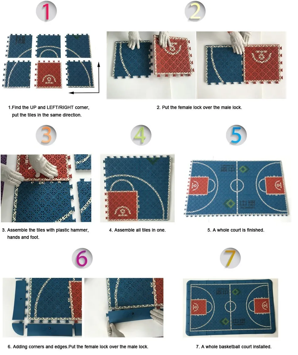 Application | Multi-Purpose Sports Court, Professional Basketball Court, Futsal Court, Tennis Court, Roller Skating, Badminton, Volleyball, Hockey, Floorball, Kindergarten, Backyard, wedding pad, swimming pool, Other Outdoor Events, etc. | ||||||||||||||