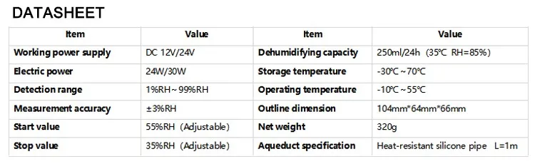 7. Start and stop dehumidification values are adjustable;