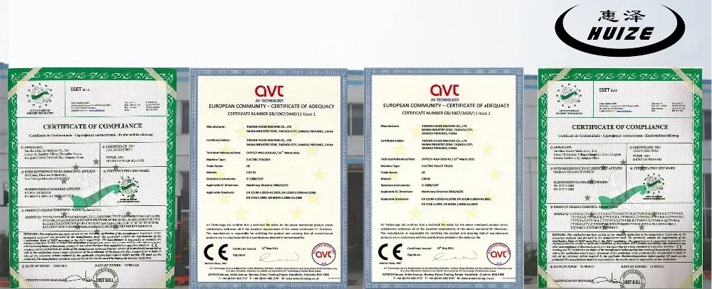 Taizhou Huize Machine Co. Ltd professionally manufactures standard electric forklift, electric stacker, electric pallet trucks, electric paper roll stacker and electric floor cranes. The main advantage with the factory is customized solution upon application requests, including Stainless Steel material, explosion-proof, weighing system, industry specific solution etc.The factory successfully gains reputation like, ISO9001, CE, Utility Patent Certificate, Invent Patent Certificate etc.