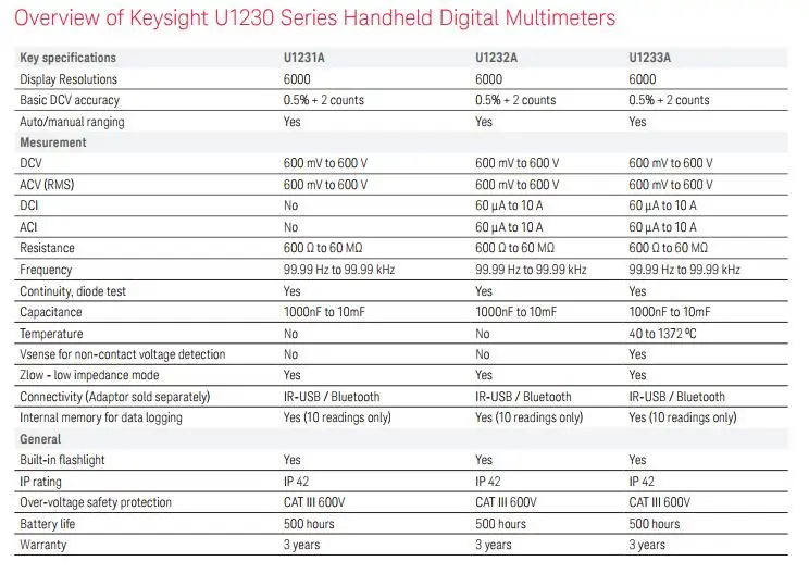 500 hours of battery life and Keysight Remote Link Solution enabled (wireless data logging via Bluetooth®)