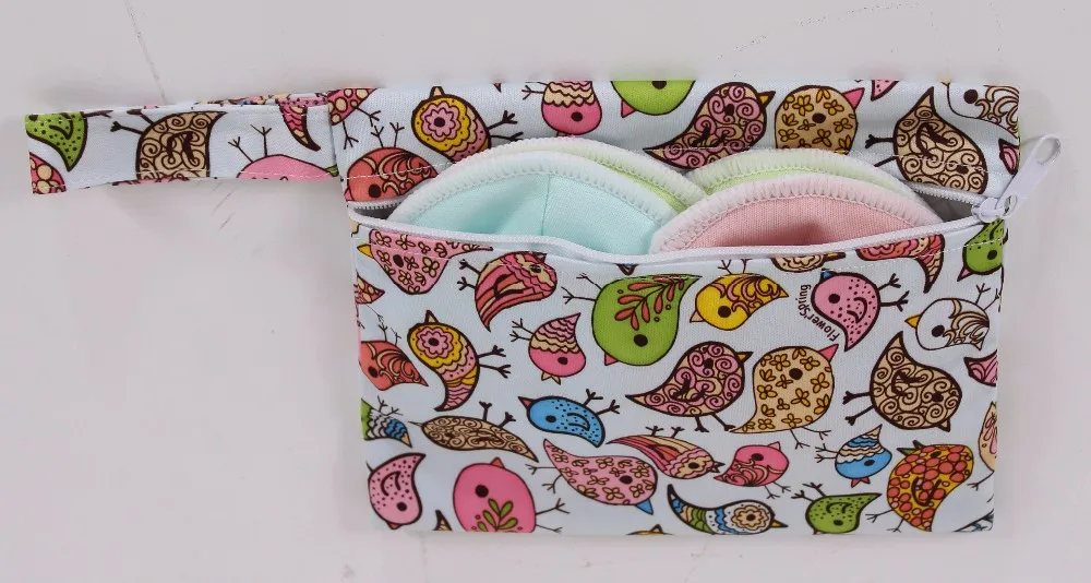 Small pouch made with perfect material PUL or Minky PUL (polyester knit laminated with a thin and transparent film comes to waterproof and breathable), preventing leaks and keeps water outside.