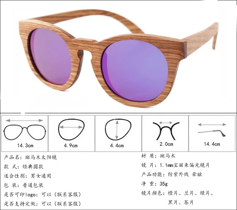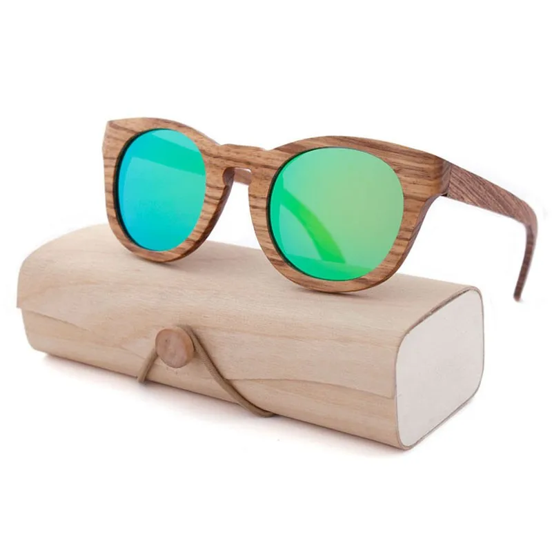 The sunglasses are made of natural wood or bamboo. They are eco-friendly and good looking. Normally we have red sandal wood, black sandal wood, bamboo, maple, walnut, and zebra wood. We laso have some other woods, depending on your order requirements.