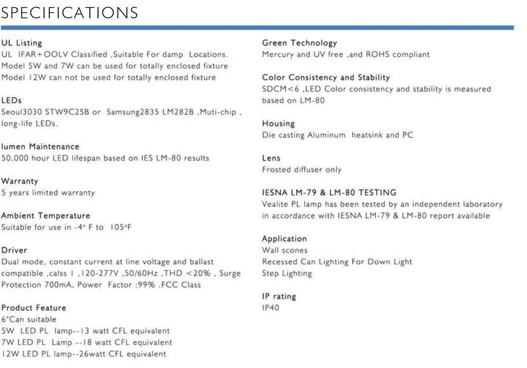 | CCT | 2700K/3000K/3500K/4000K/5000K |