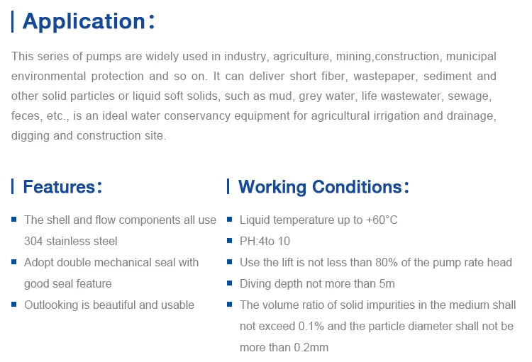 Stainless steel irrigation sand wastewater sewage submersible water pump