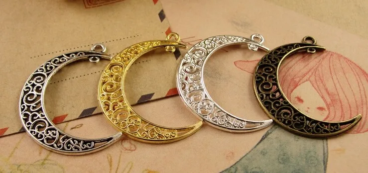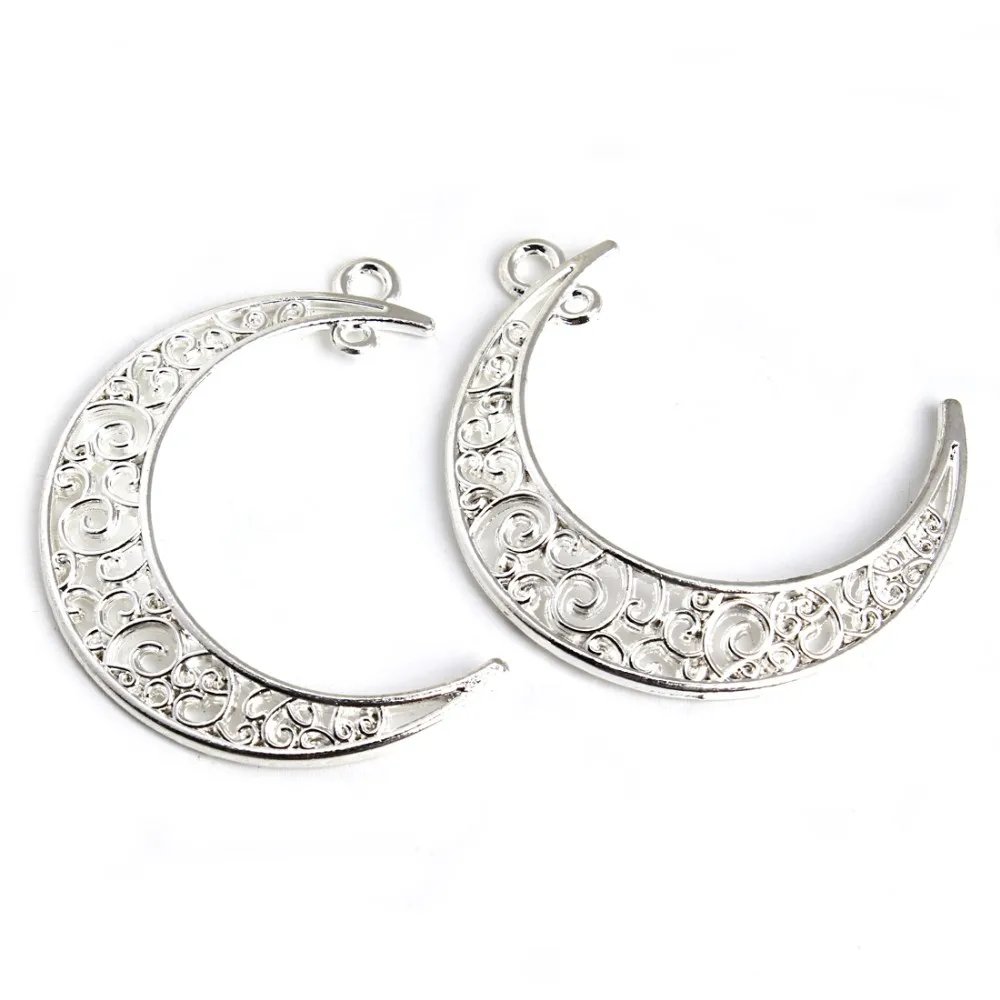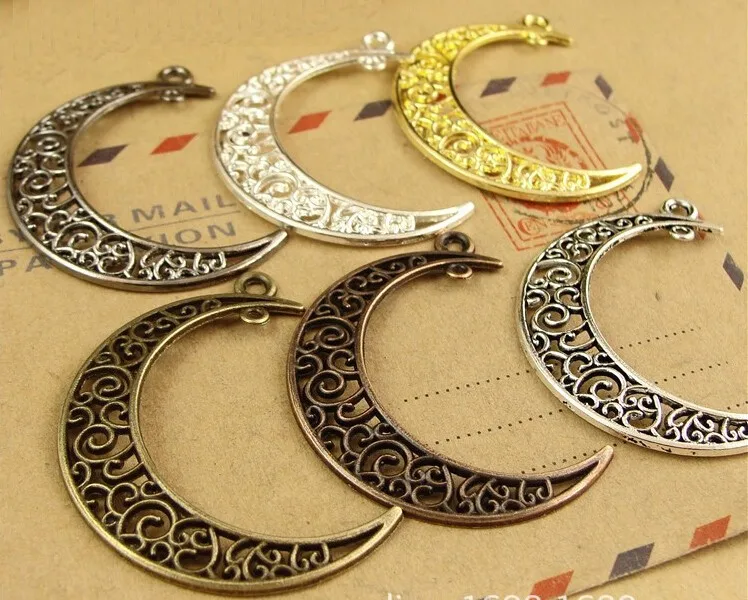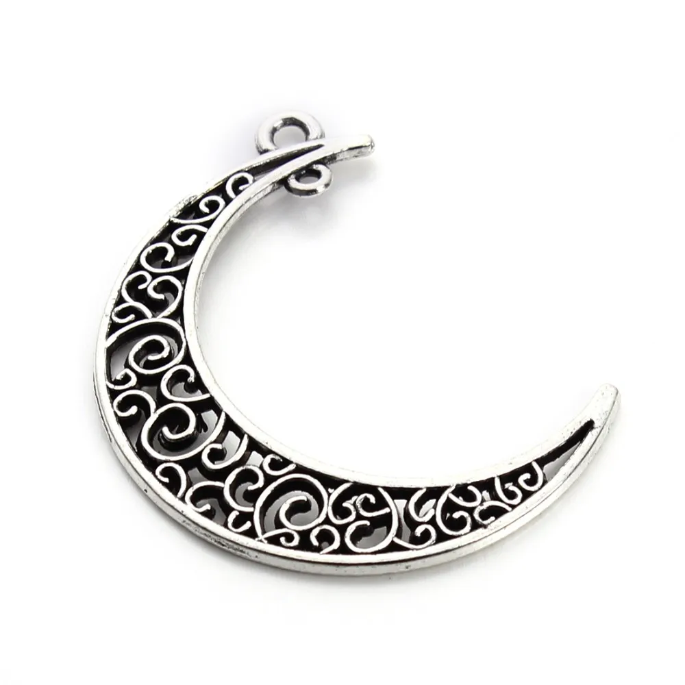 Factory price 41*30mm hollow crescent moon steel charms pendant for jewelry necklace bracelet making