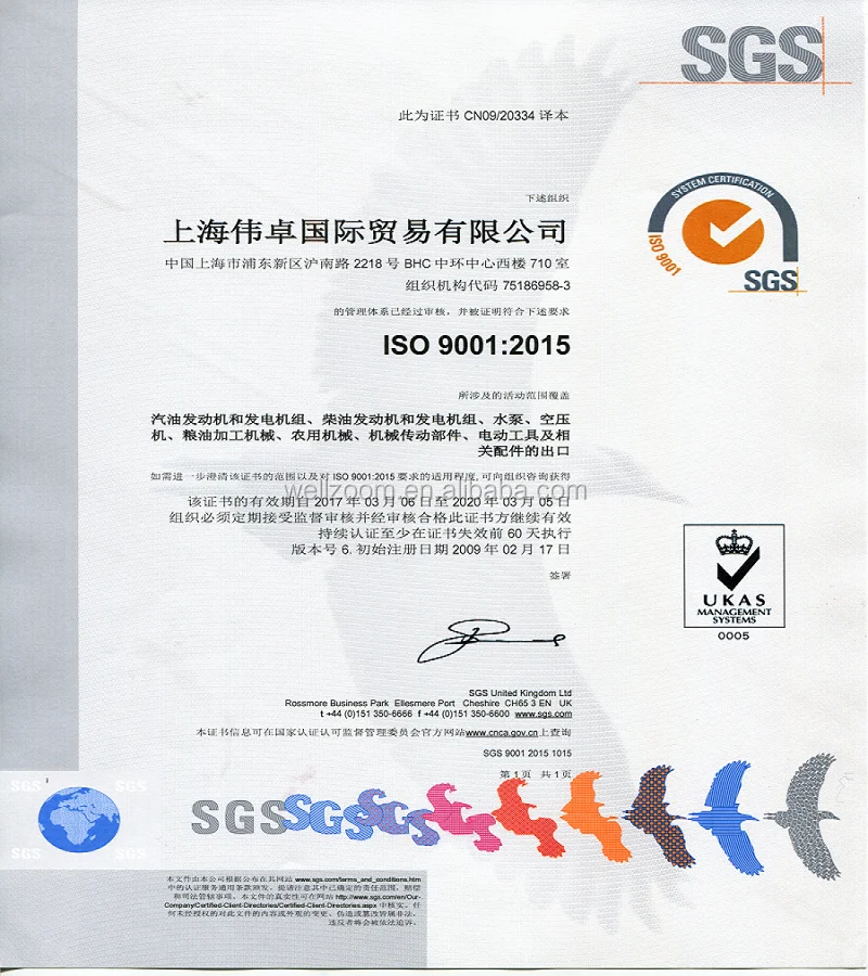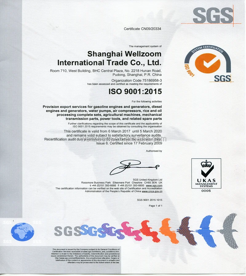 Shanghai Wellzoom International Trade Co., Ltd. Is a professional trade company established in 2003. We are specialized in the import and export of mechanical and electric products. We have particular strength in products such as general machinery (gasoline/diesel engine, gasoline/diesel generator, electric motor, air compressor, welding machine etc. ), agricultural machinery (oil and rice processing machinery, water pumps and their accessories etc), hardware (electric tools, hand tools etc.), auto and motorcycle parts, bearing and transmission, etc.