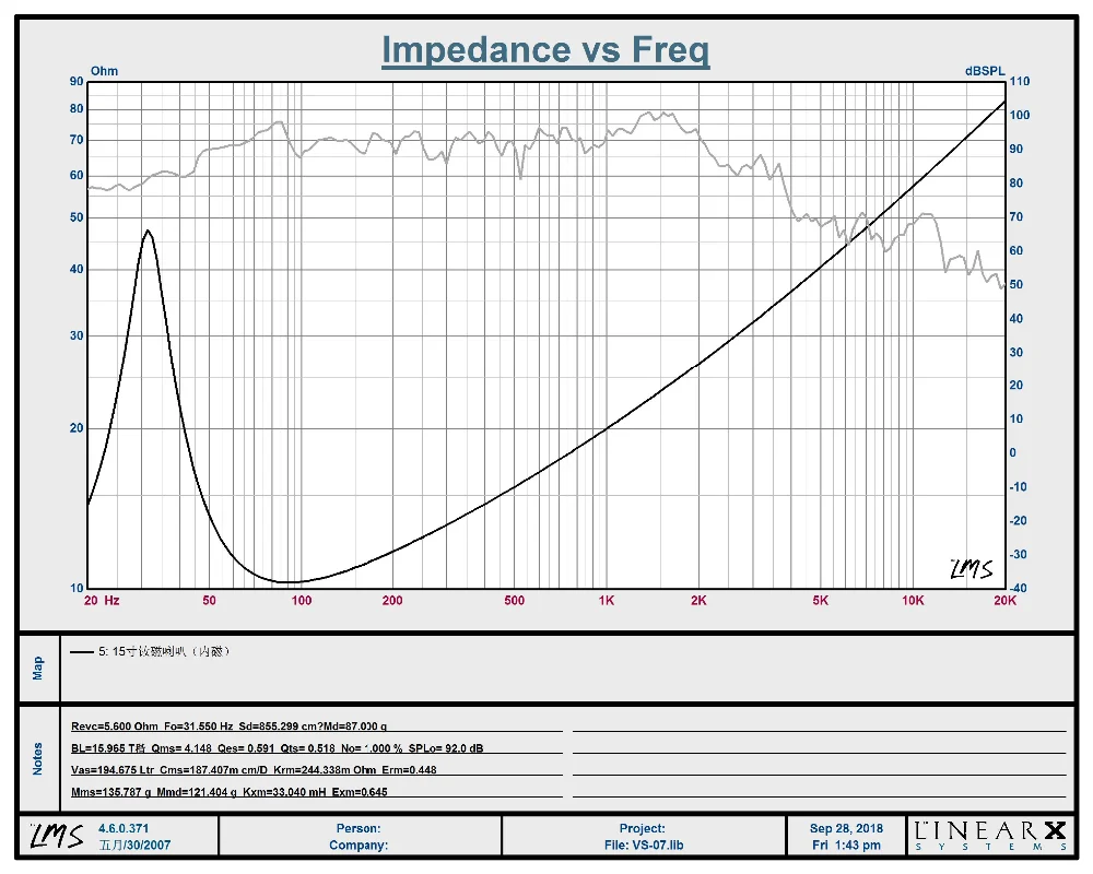 Fo:431.5Hz ,Qms:4.14, Qes:0.59 ,Qts:0.52, Vas:195L,