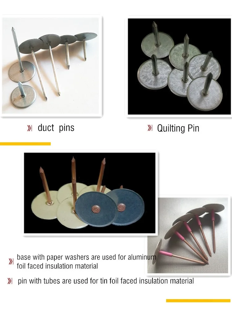 Perforated base pins Quilting pins&Duct liner pins CD weld pins Self locking washers & dome caps Insulation Impaling Clips drive pins