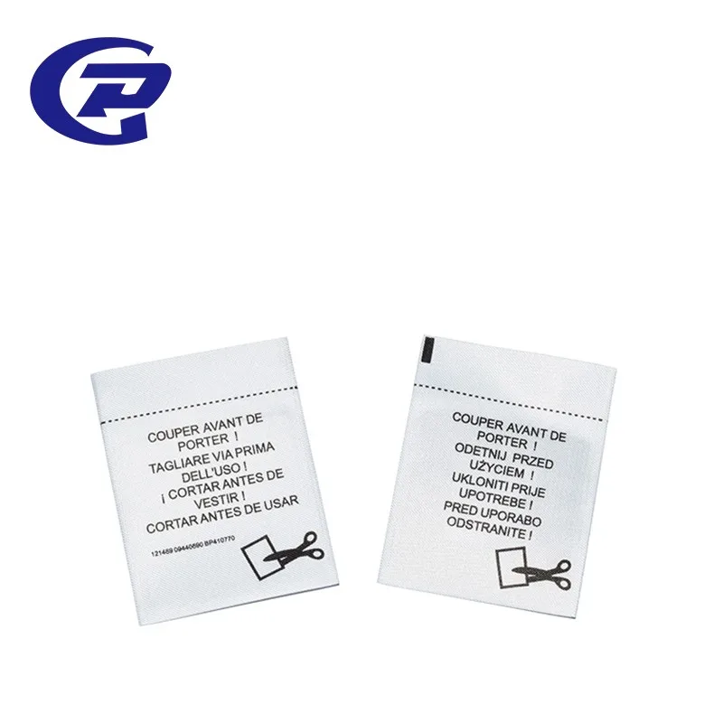 Different shapes and colors of woven laebl for your options.