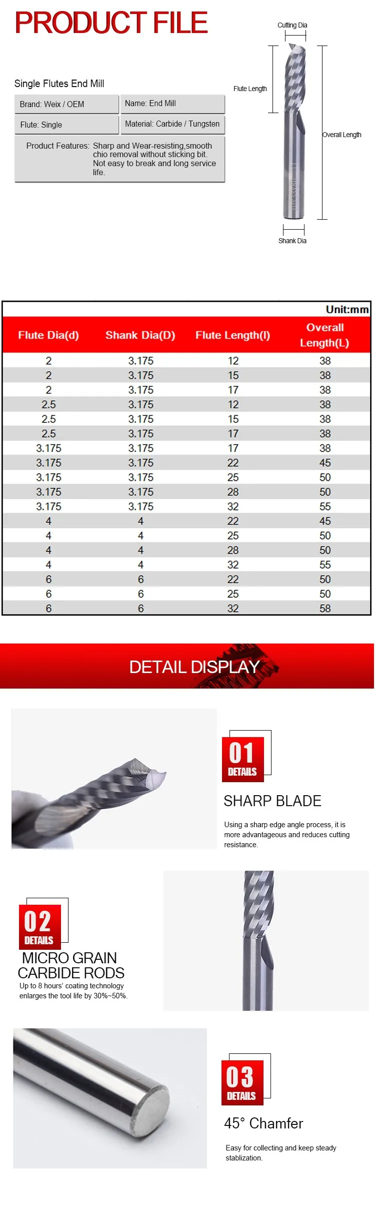 Product Name | Single Flute End Mill for Woodworking | ||||