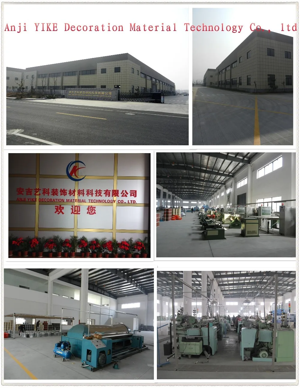A: Our factory is located in Tangpu Industrial Zone, Anji County, Zhejiang Province,China. in the north west of Zhejiang, and is very near to both Shanghai and Hangzhou. It's 60 kilometers from Anji to Hangzhou, and 90 kilometers to Hangzhou International air port, and 230 kilometers to Shanghai.