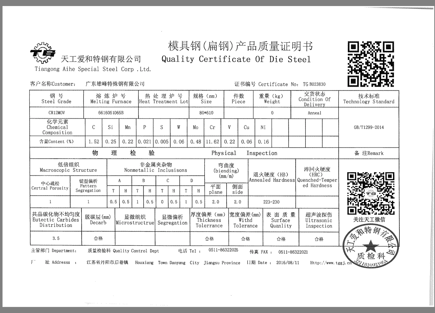 Certificate | ISO9001:2008 IATF16949 | ||||||