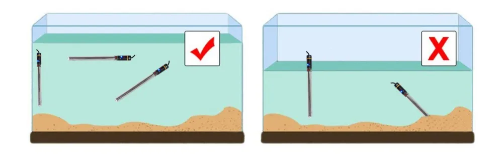 The waterproof of the aquarium heater is IP68, which must be submersible when using.