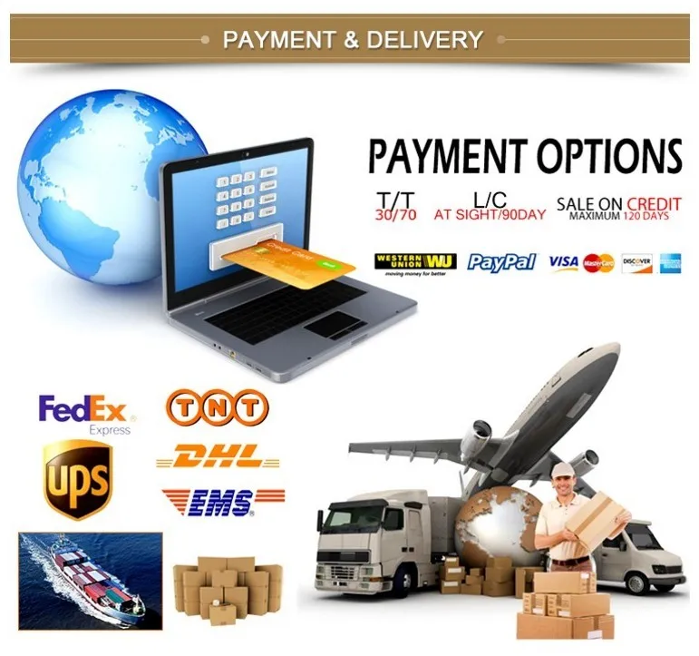 Shipping information: Normally, we will deliver the sample products via international express, such as DHL, FedEx, UPS. For bulk order goods, it will be delivered to customer by ocean.