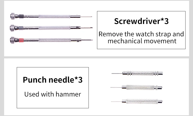 Precision Anti-magnetic Screwdrivers*3 (black:1.0mm, red:1.2mm, gray:1.4mm) | Remove the watch strap and mechanical movement |