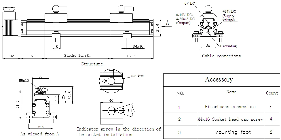 Measuring range: | 50-3000mm | nonlinearity: | 0.05% or 100um(The large value shall prevail) |