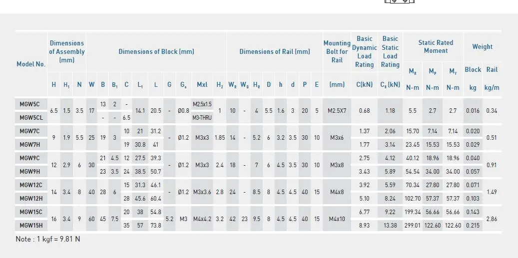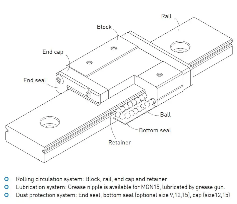 Design feature of standard type miniature guideway-MGN: