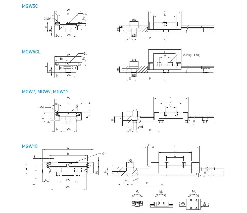 HIWIN offers two types of linear guideways, Standard type (MGN) and width type (MGW).