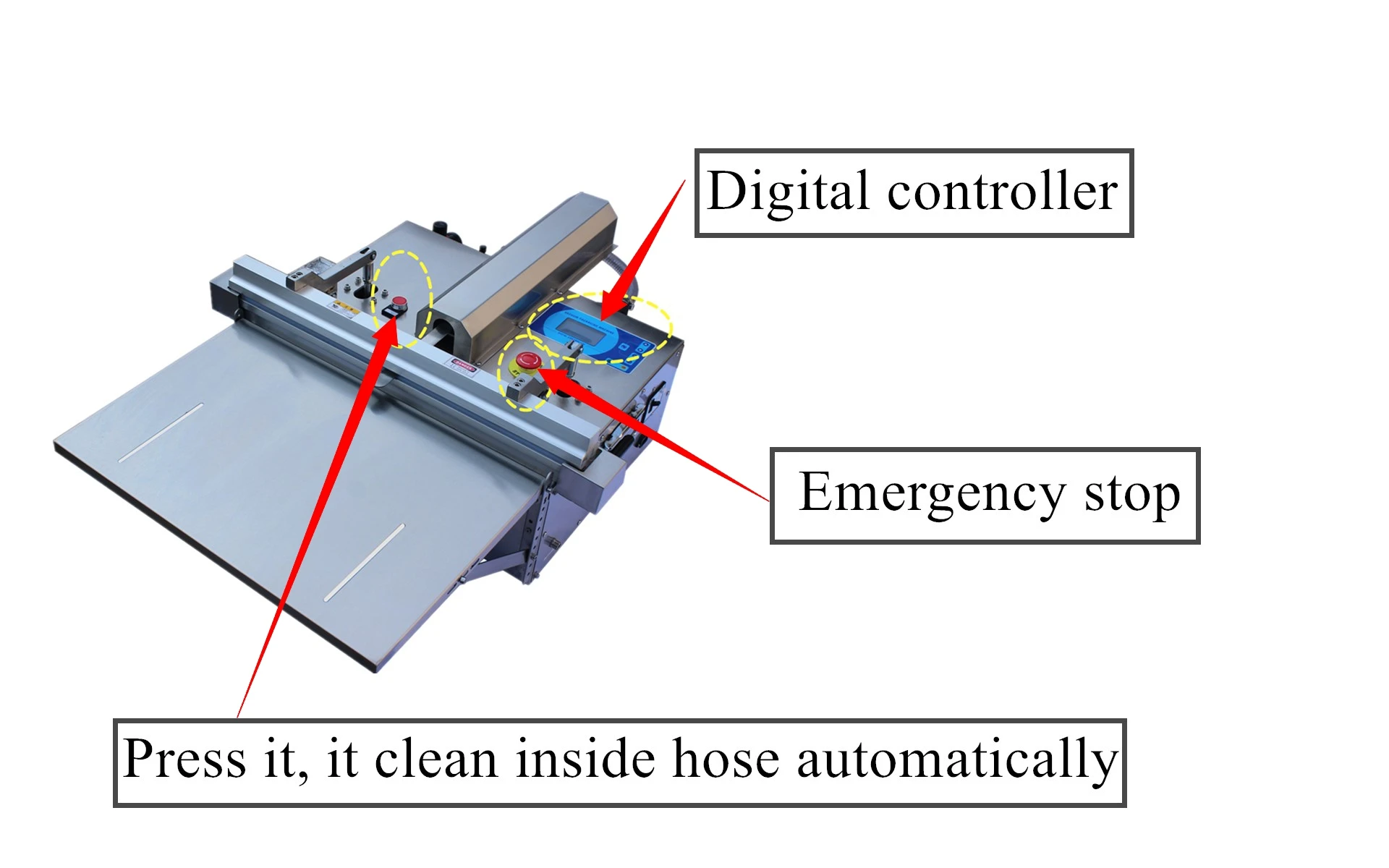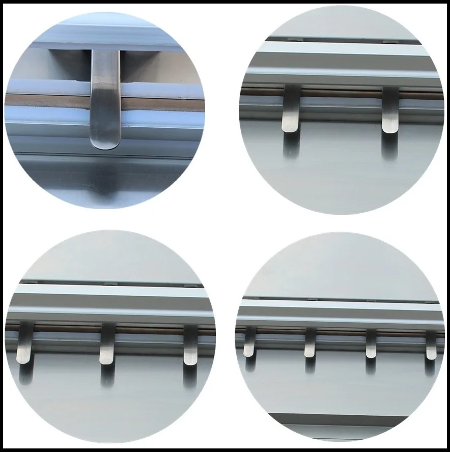 * Double heat system for thick bag, 100USD * Air compressor, 260USD * For 600-1200mm seal, we can put more than 1nozzles on machine, cost extra 230USD for 2 nozzles, 300USD for 3 nozzles, 380USD for 4 nozzles