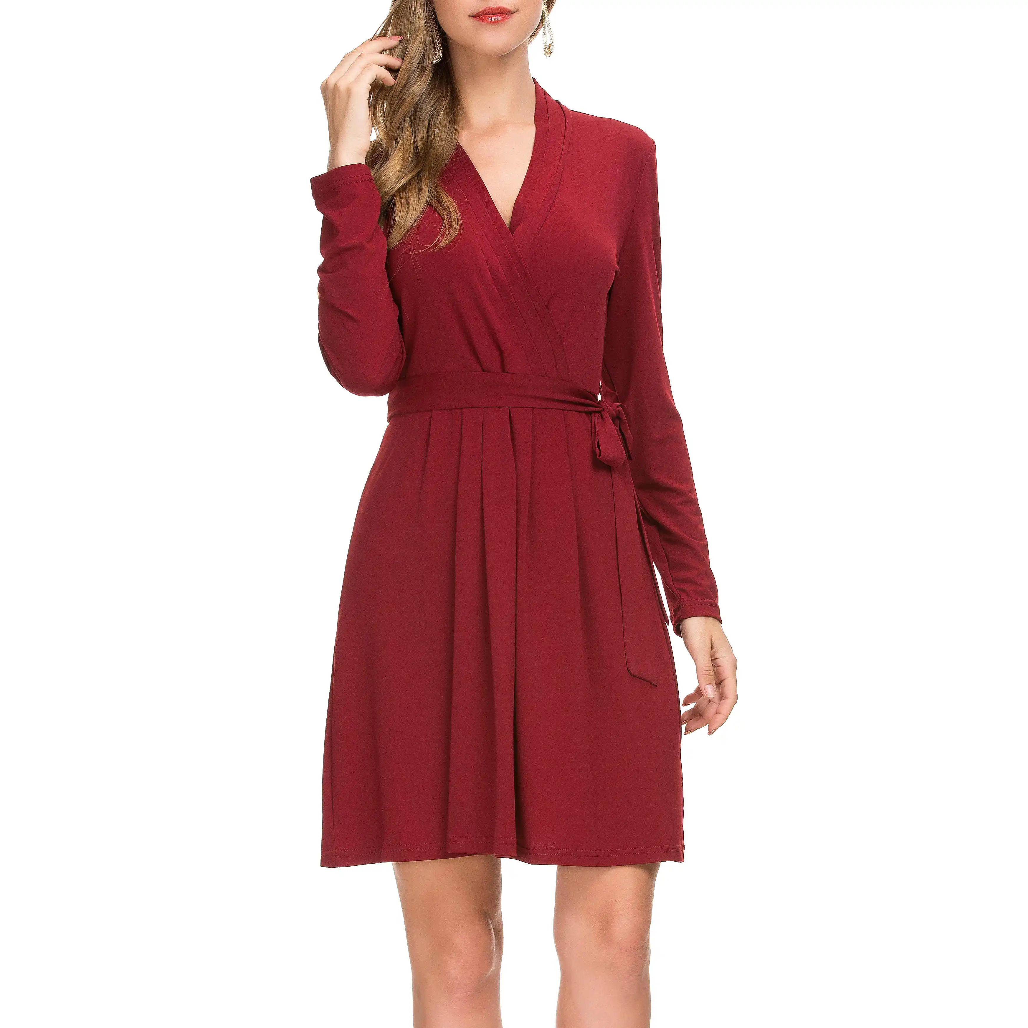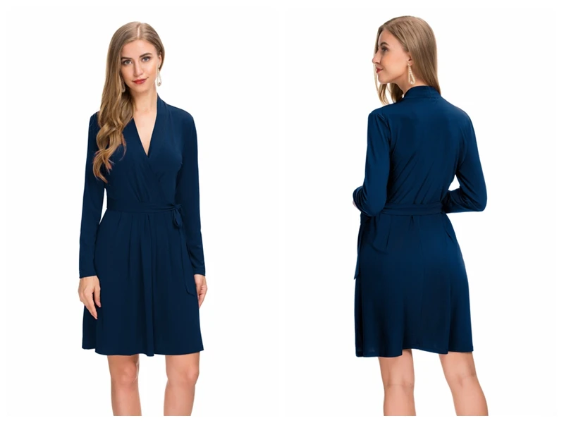 Production Name | Hot Sell Women Fashion Clothes Elegant Casual Belted Faux Wrap Midi Dress |