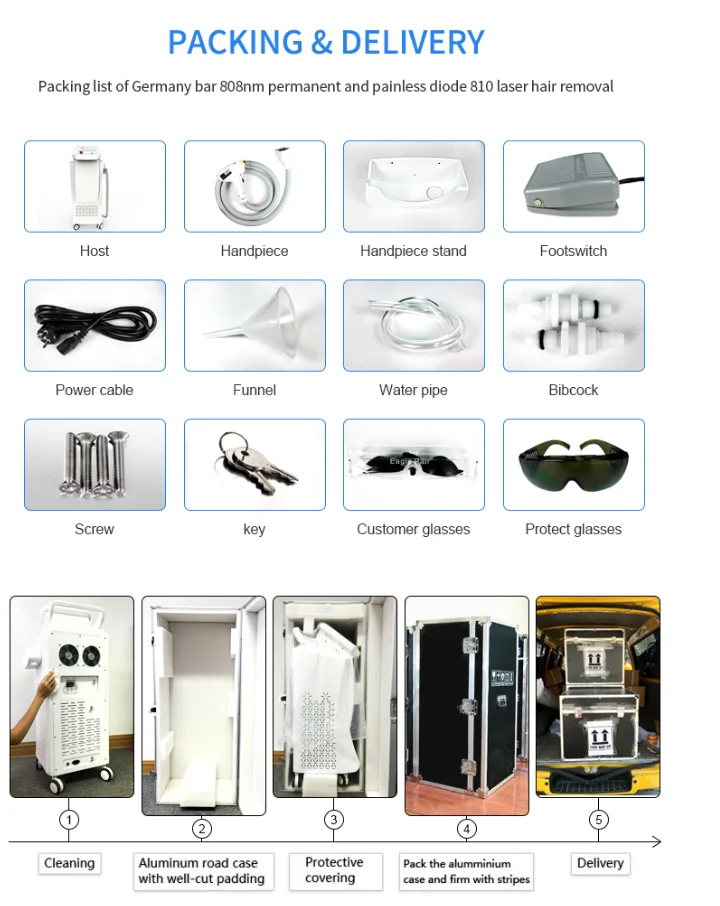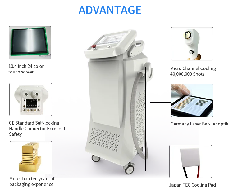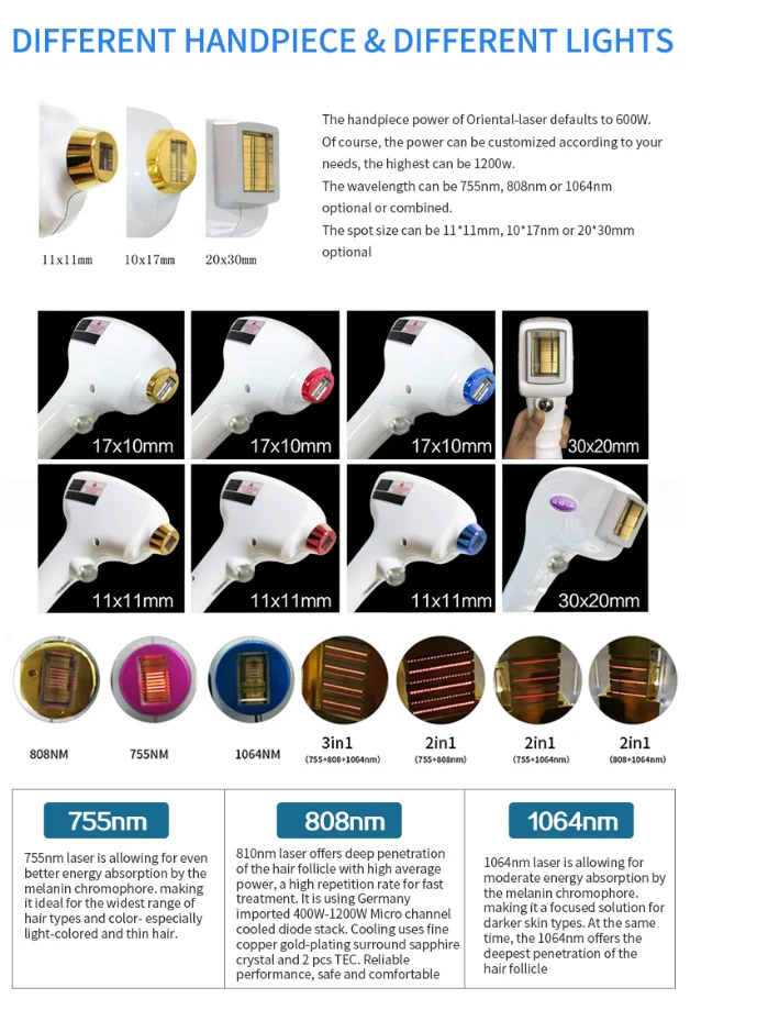 with the Germany imported 1200w 810nm micro channel diode laser. Sliding treatment has a