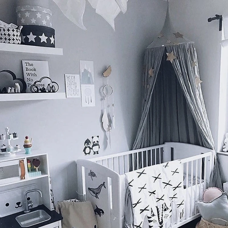 Cotton Linen Baby Mosquito Net Hanging Dome Bed Curtain For Living Room Home Sofa Tent Kid Bedroom Decor
