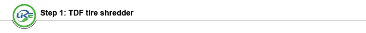 the first step is TS series tire shredder machine, is used to shred the whole tire into TDF rubber chips in 50*50mm.