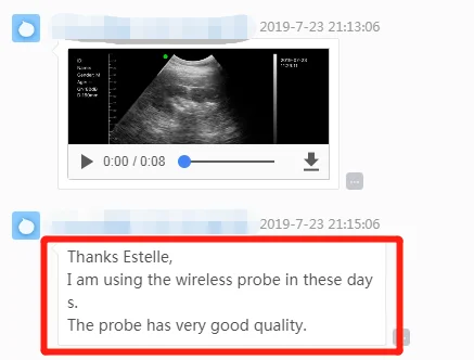 The wireless probe is a small portable Doppler ultrasound scanner with no screen. It has an integrated ultrasound board inside and comes with a wireless network that can be connected wirelessly to a PC, tablet or smartphone. After installing the ultrasonic software, the function of the ultrasonic scanner is realized. And transfer images on your smartphone/tablet via Wi-Fi. The probe has its own WiFi and does not require an external WiFi signal. Small, intelligent, easy to carry and operate.