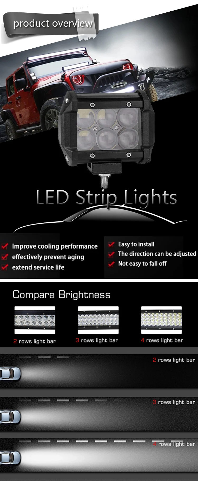 12v led waterproof strip work headlight auto Slim light bar for car CTD-SM-001-TTJ