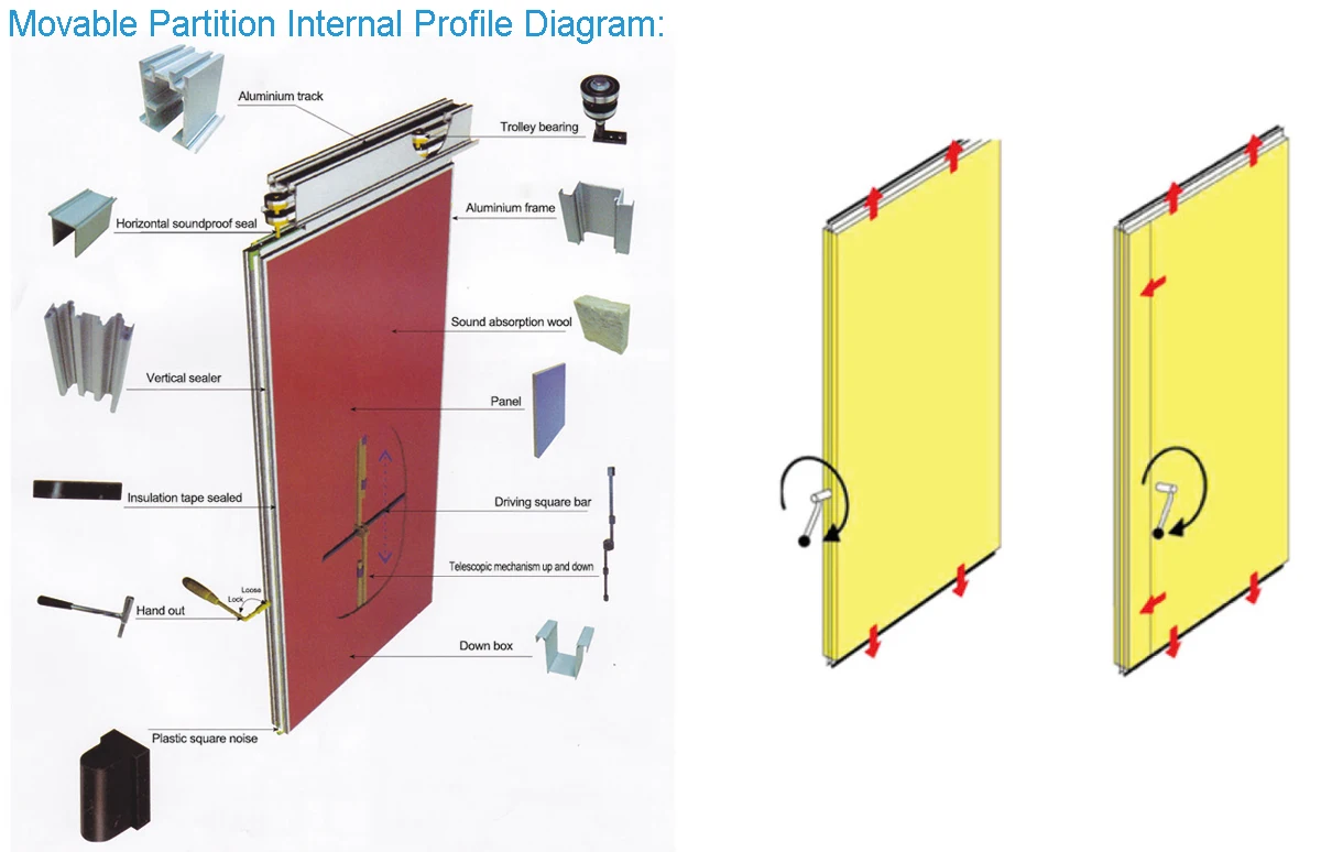 Product Name | Acoustic Sliding Folding Partition | Application | Gymnasium, huge meeting rooms, auditorium,multifunction room, banquet hall, exhibitions halls, etc. |