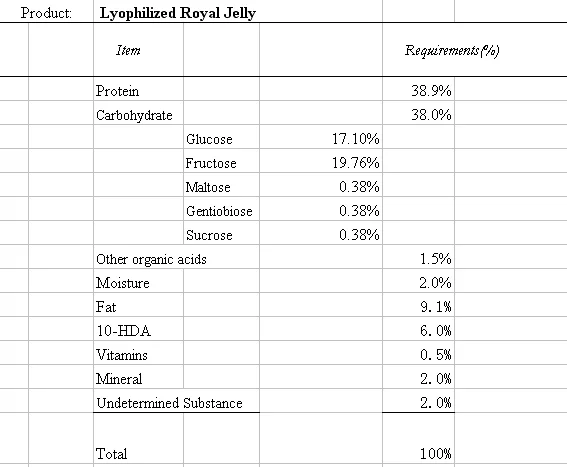 Lyophilized 100% Fresh Royal Jelly Powder 10-HDA 6%