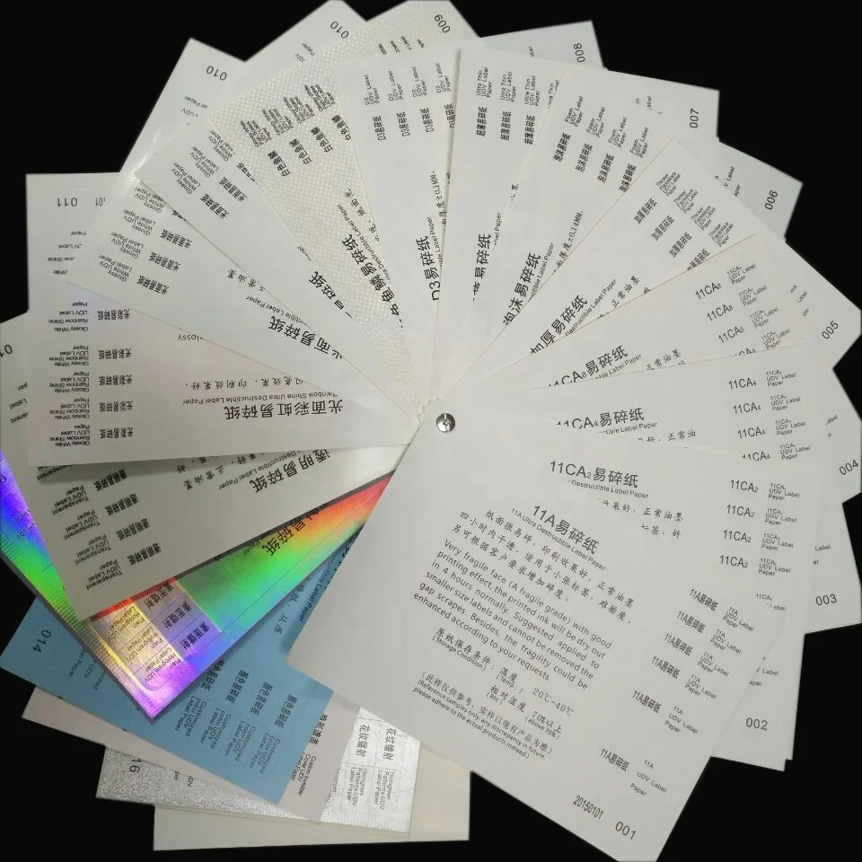 1.we have patents for these destructible label materials, we studied out lots of different destructive label materials for different use by ourselves. No one other company could do these kind high quantity ultra destructible label materials in China.