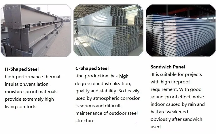 6. Main materails: Section Steel/sandwich panel/ corrugated steel sheet