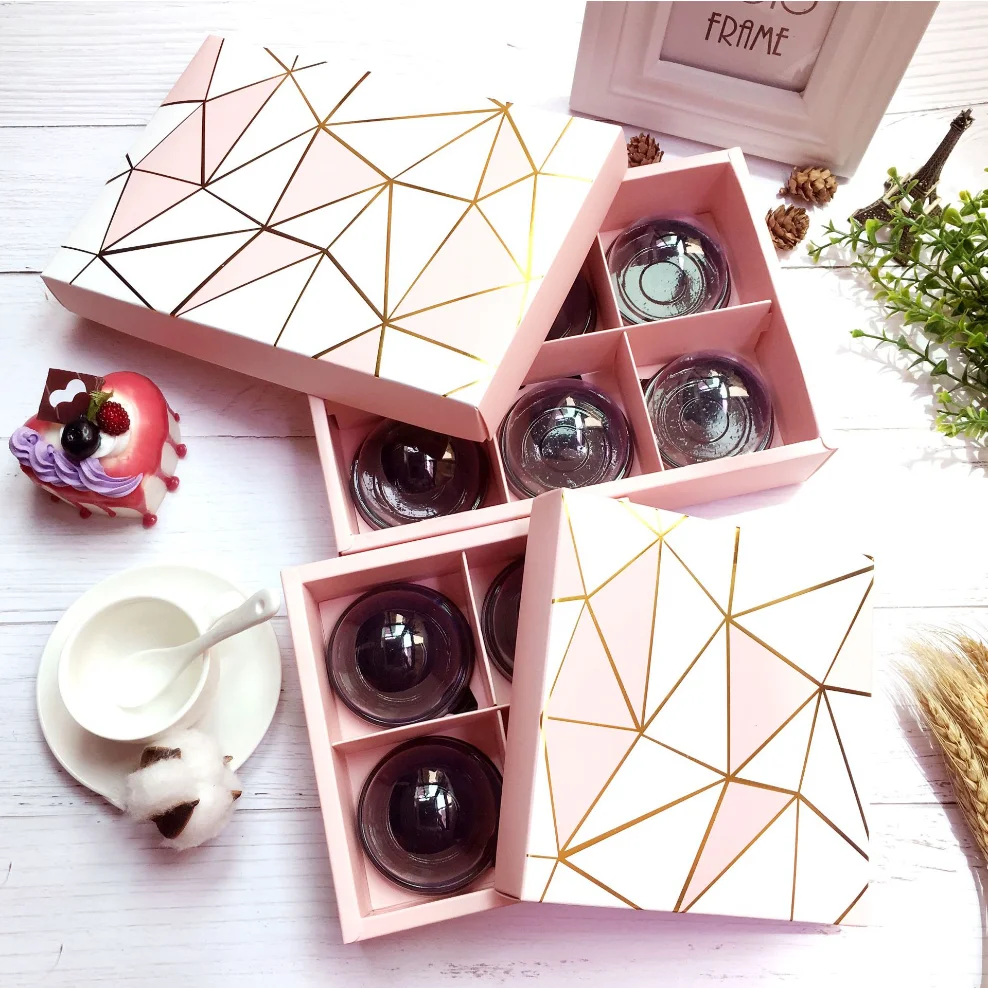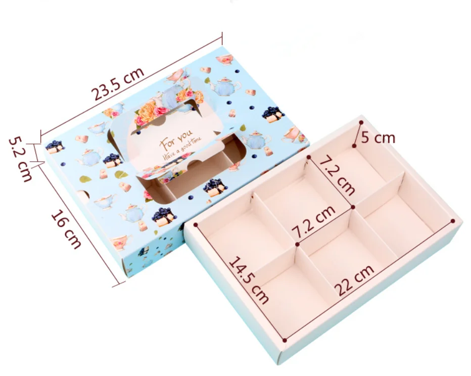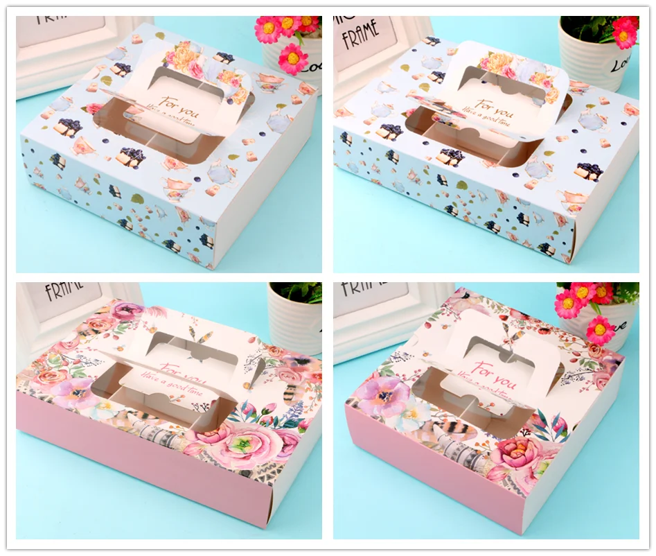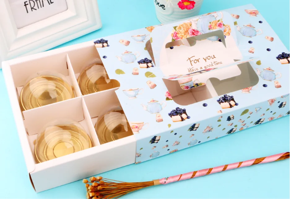 4-6 Dividers Egg Tart Gift Box Decorative Cheesecake Moon Cake Cupcake Paper Box With Handle Drawer Box