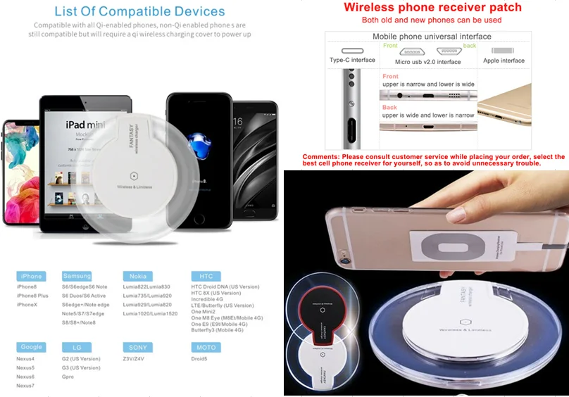 Other Phone Without internal QI Charging Coil, Please buy the extra wireless receiver.