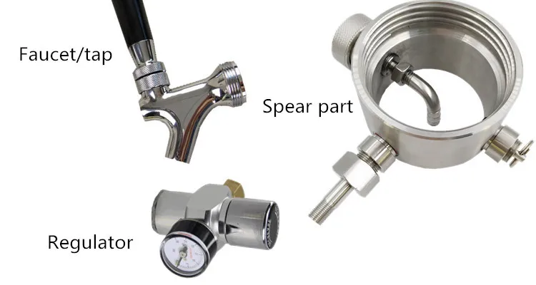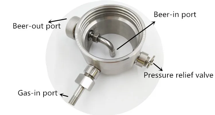 1) Beer out port for a faucet/ tap: Easily pours beer any time, without removing cap.