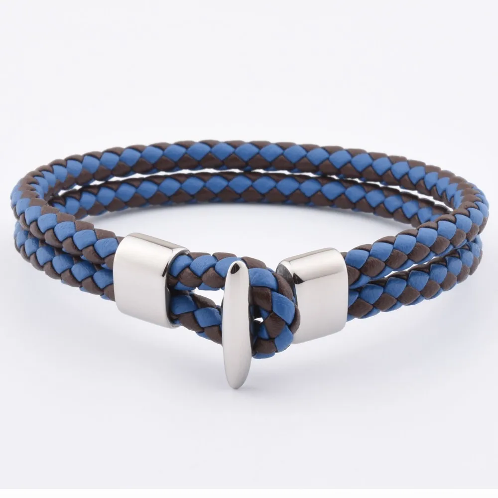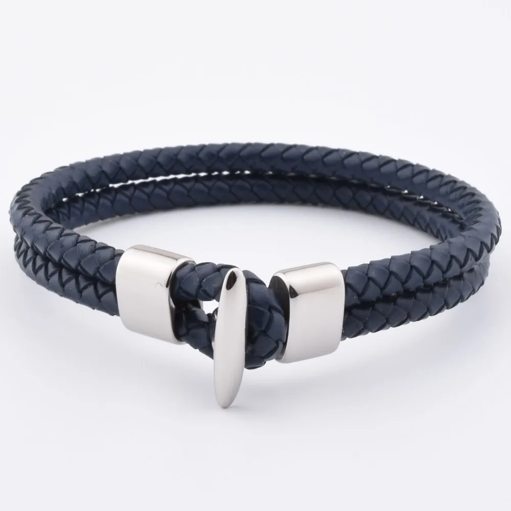 Product Name: | Factory Hot Sale Large Mens Navy Leather Steel Hook Clasp Latest Bracelet For Teenager Men |