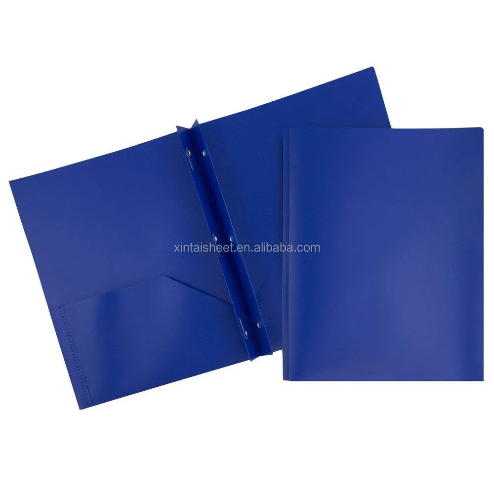 Our two-pocket PP Folders with prongs are durable, made with smooth & sturdy plastic, and have a business card slot on the right side. These folders are perfect for keeping your important files safe and 3 hole punched documents secure & organized at school, the office, at home, or on the go!