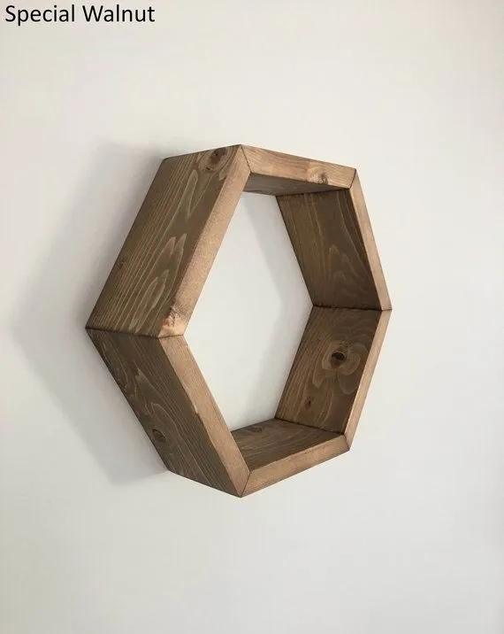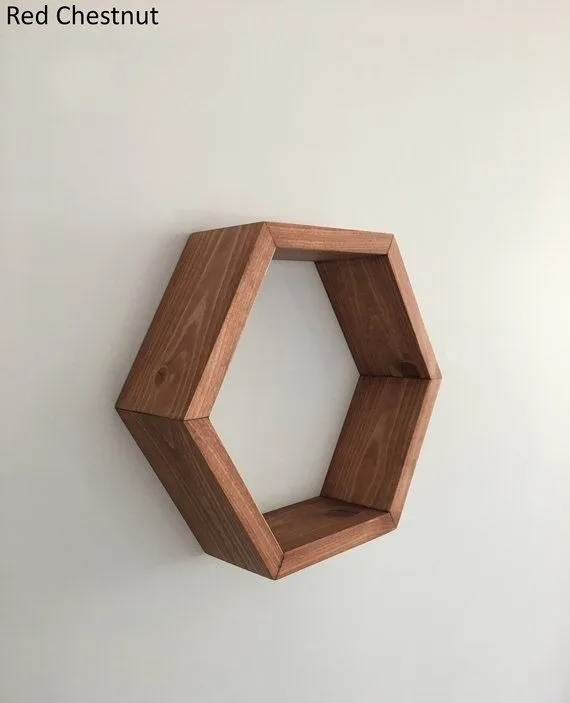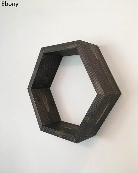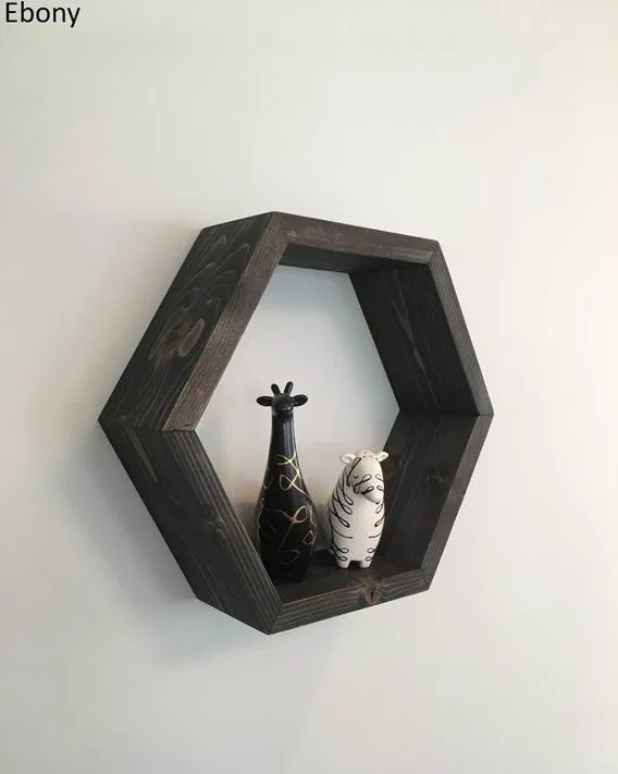 Beautifully hand-crafted hexagon floating shelf that is ideal for creating a contemporary and modern look in your space. Great for displaying small plants, decorative glass, small artworks, picture frames and other little trinkets that you love. Be creative in the shelf arrangement and turn a boring wall into an art piece of your own.