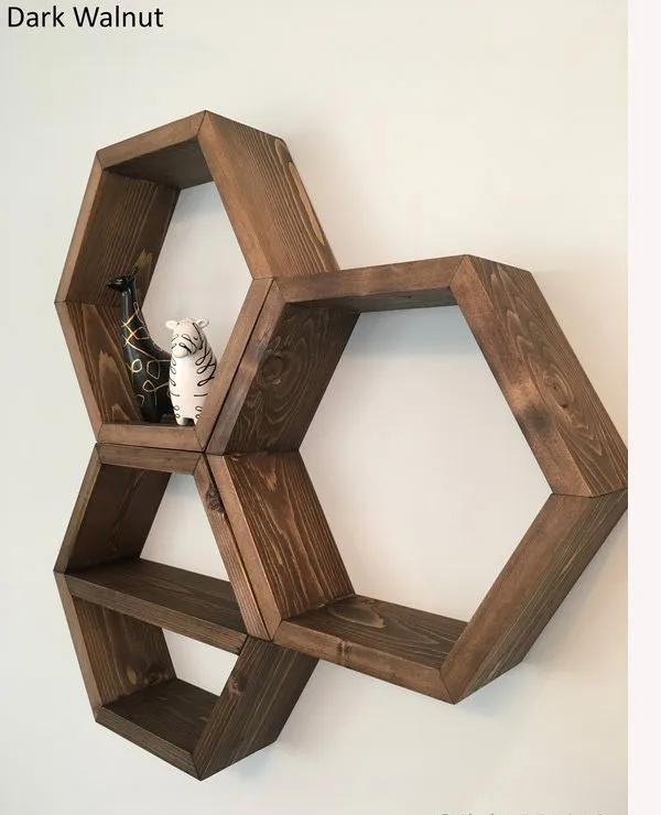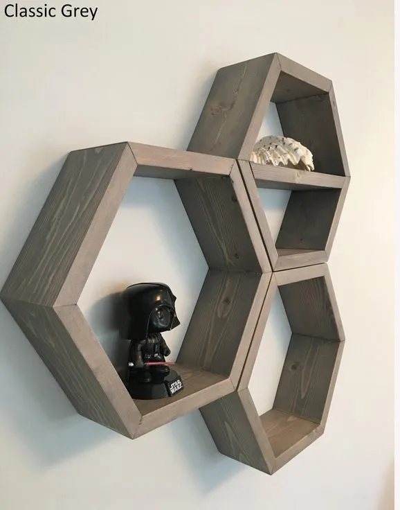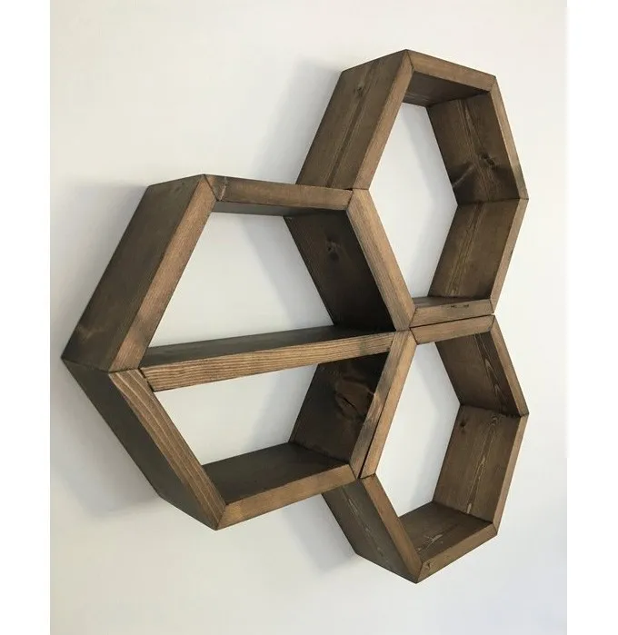 set of 3 hexagon wooden wall shelves, geometric shelves, honeycomb shelves