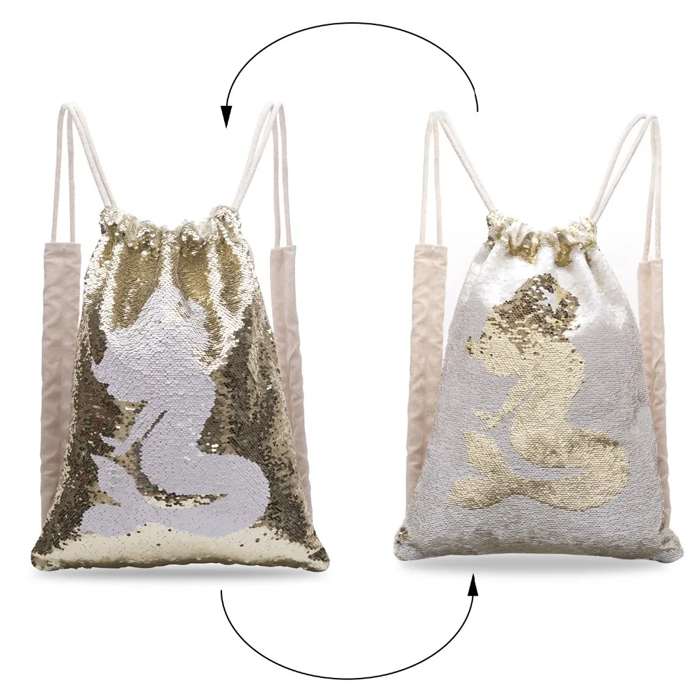 Reversible drawstring bag Two-Tone Magic Sequin backpack Flip Sequin Initial Backpack