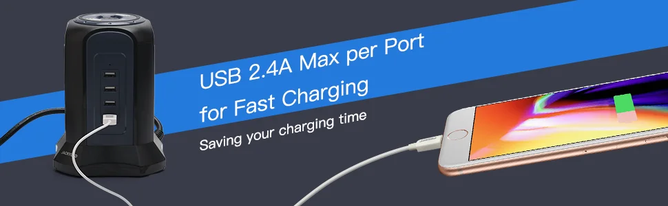 ● Max 2.4A current output for per port, 4.5A in total. Give you a full speed charging, save your time and patience.
