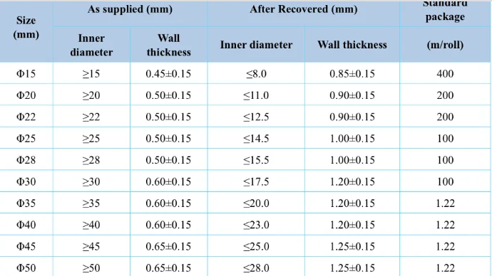- Full shrink temperature:105°C