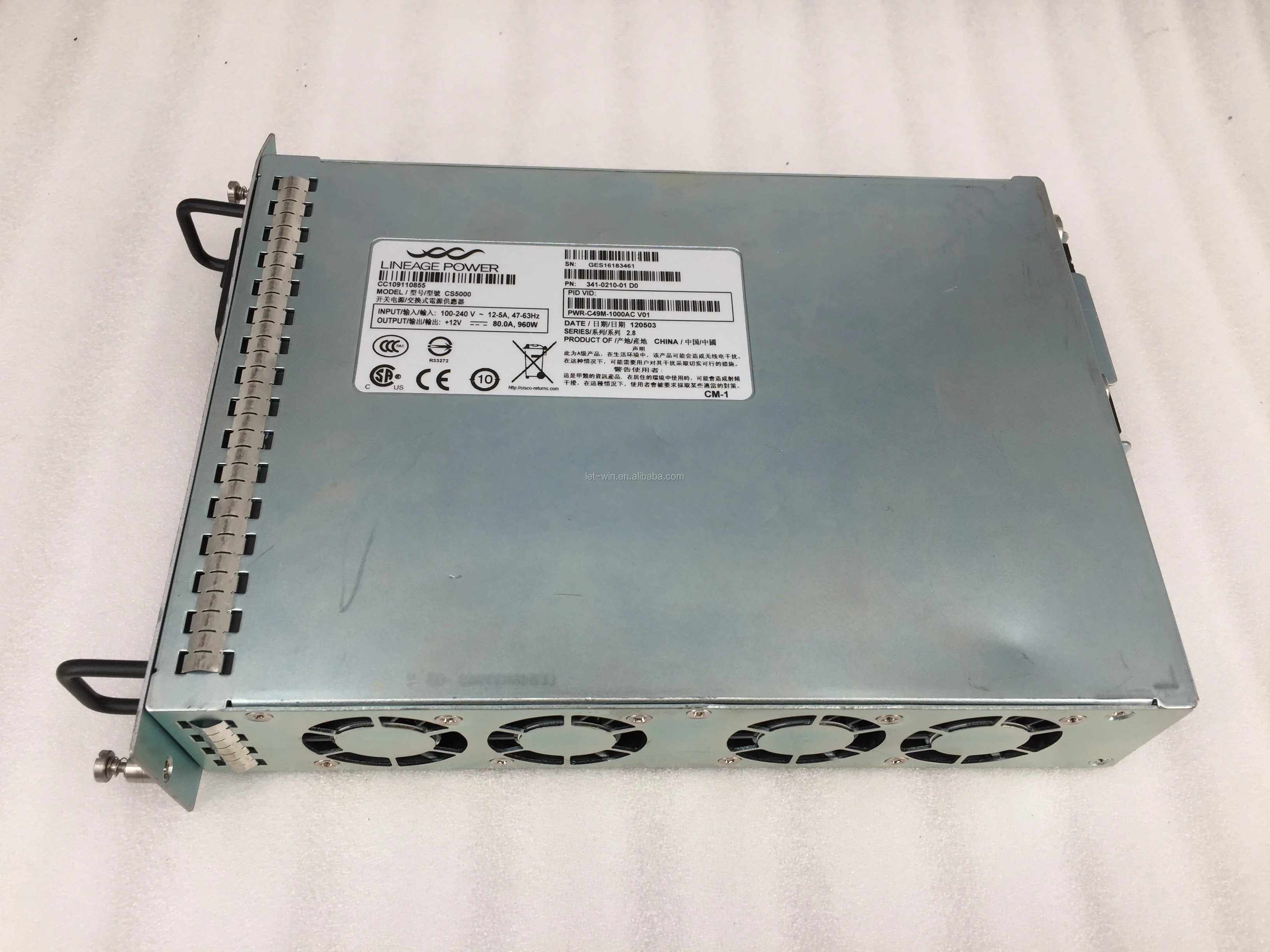 * Part Number: PWR-C49M-1000AC * Power supply output: 960W * Power supply dissipation :240 W * AC-input :12 A maximum @ 100 VAC 5 A maximum @ 240 VAC * Length: 8 feet * AC frequency: 50 to 60 Hz * Output current: 80 A maximum